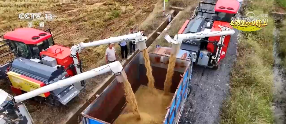水稻的丰收得益于村里鼎力推进的高尺度农田扶植,构成“收割-转运-烘干-手艺保障”无缝跟尾的功课链条。种粮大户青国连望着籽粒丰满的稻谷,