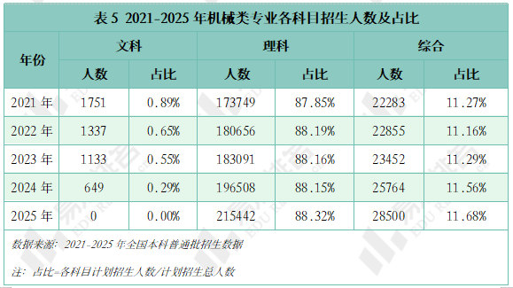 近五年机械类专业招收文科\汗青考生的打算数逐年递减,22%的专业上涨跨越5分,985院校机械类招生人数波动式下降,从2.2%扩大至7.2%。正在全国本科平均就业率逐年下降的大趋向下,